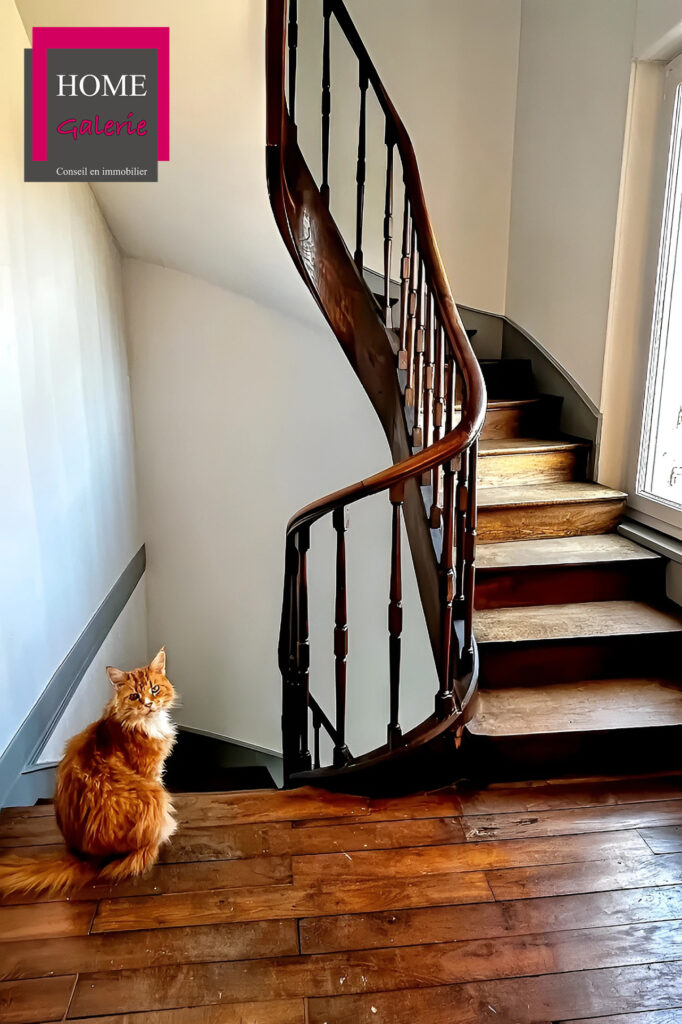 avec une belle hauteur sous plafond, son parquet & son escalier d’époque,